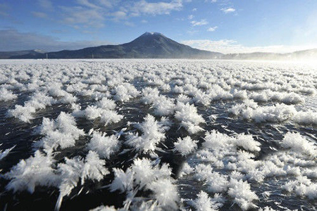 北海道极限低温-30℃ 湖面盛开霜花美如莲,受严寒天气影响,在位于日本北海道东部的阿寒湖上布满了形似美丽花朵的白色冰霜,成为当地一道独特的风景线......