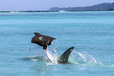 鲼鱼遭锤头鲨追杀 为求生变“飞鱼”【奇趣生物】